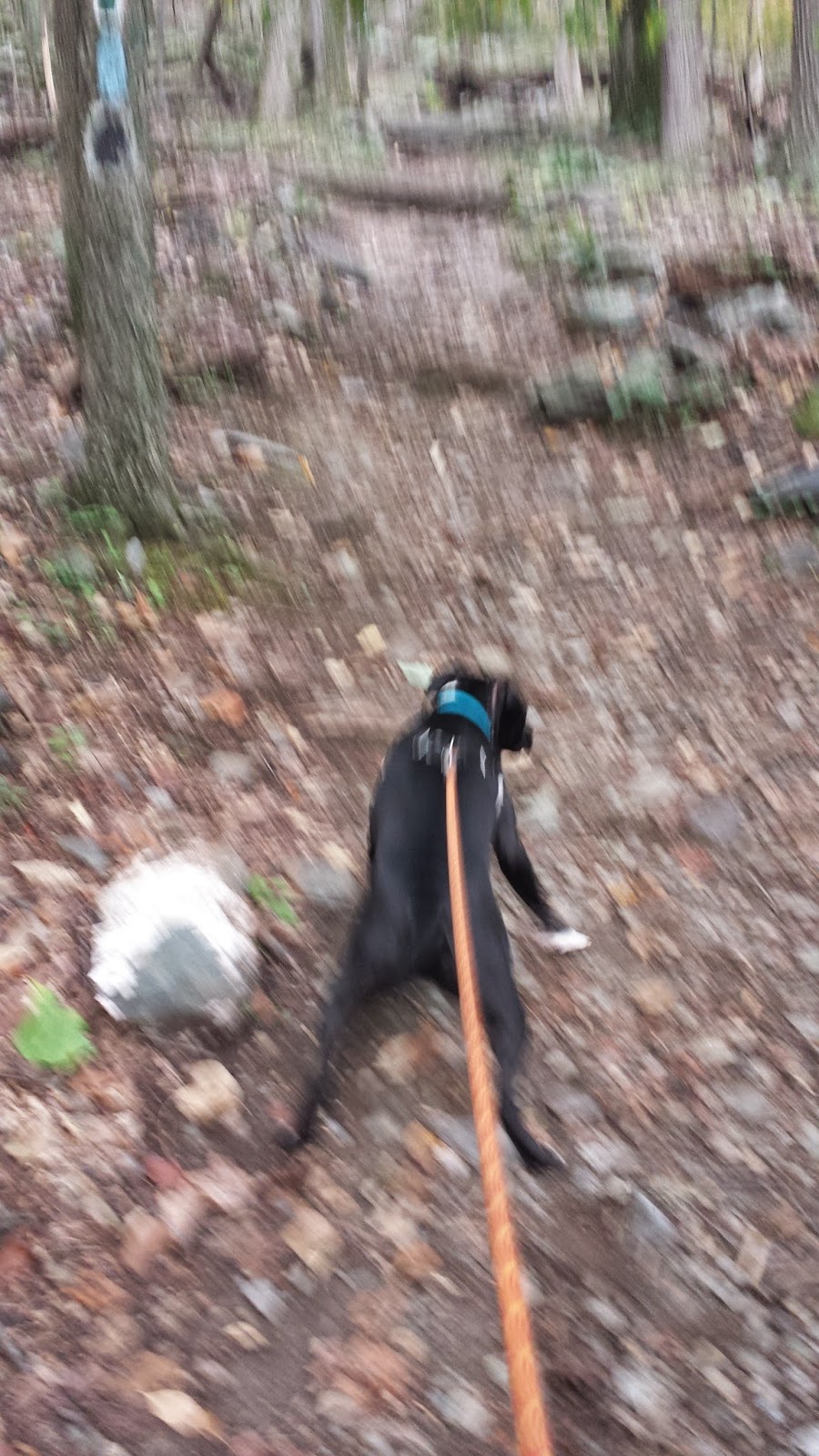 Hiking with a dog is awesome. Hunter loves to go down hills quickly, so he keeps my heart rate up by keeping my speed up even when we're going downhill. Then when we're going uphill, he helps by pulling me along!